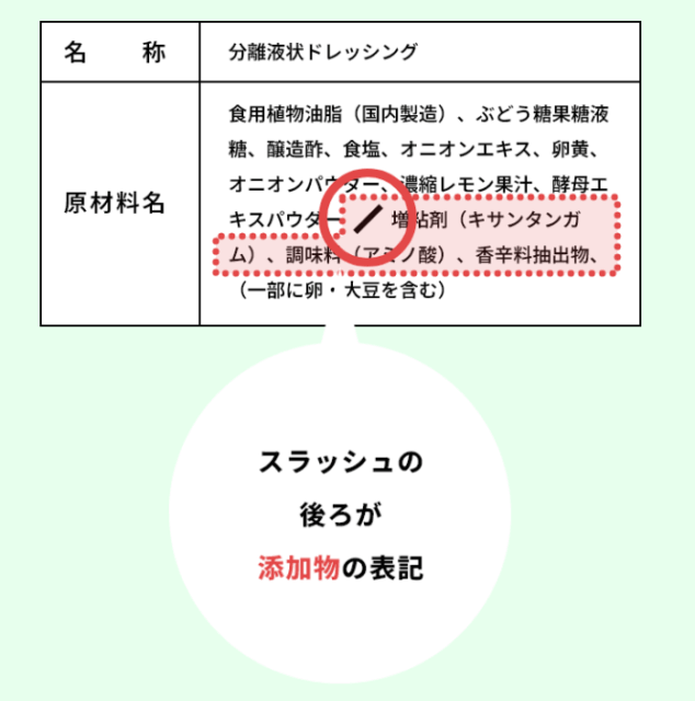 その後ろに食品添加物が表記されます。